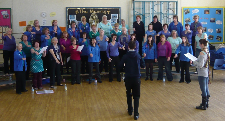 It's also worth mentioning how it was decided to toggle between those two states, as it's a technique I developed with Magenta as part of my campaign to devolve control, and have found it increasingly useful in my coaching of late. Basically, the timing is handed over to the singers in the form of a symbolic 'toggle-switch', made out of anything we have to hand (in this case a music folder), and placed on the floor in front of the chorus. This can be operated, in principle, by any of the singers, although with a large group like Bristol Fashion I'll usually hand it over just to the front row. Again, this removes some of the burden of obedience, making more room to learn by playing.