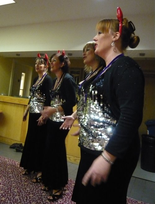 LABBS Quartet champions, FinesseThe Ladies Association of British Barbershop Singers had their annual convention last weekend at Cheltenham Race Course, and the association looks like it’s in good health. The White Rosettes consolidated the new level they reached out for when they won two years ago, getting scores solidly into the 80s, and the next six places were all scoring into the 70s. Indeed, second-place average score of 79.9 would have produced a gold medal most years.