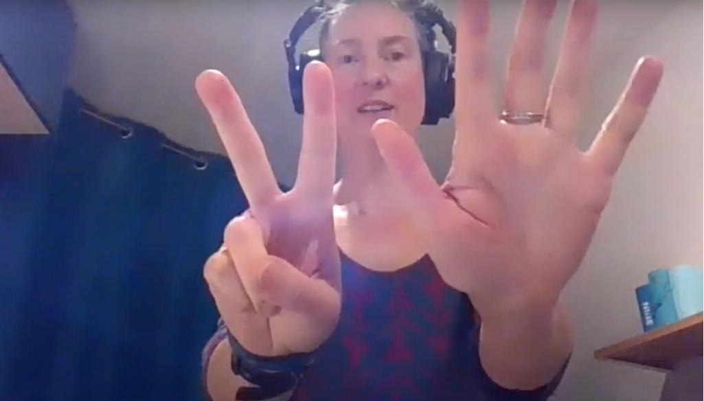 The final game of the evening was a simple yet very pleasurable improvisation exercise. I stayed on-mic and sang a basic two-bar riff, for everyone else to make up stuff to on mute. I had trialled this with my music team but not yet used it in a rehearsal or coaching context before, and I wasn’t sure what kind of stretch of musical time to expect from it. Would the repeated riff get dull quickly, or would the exercise sustain itself for a while? And how would I know?