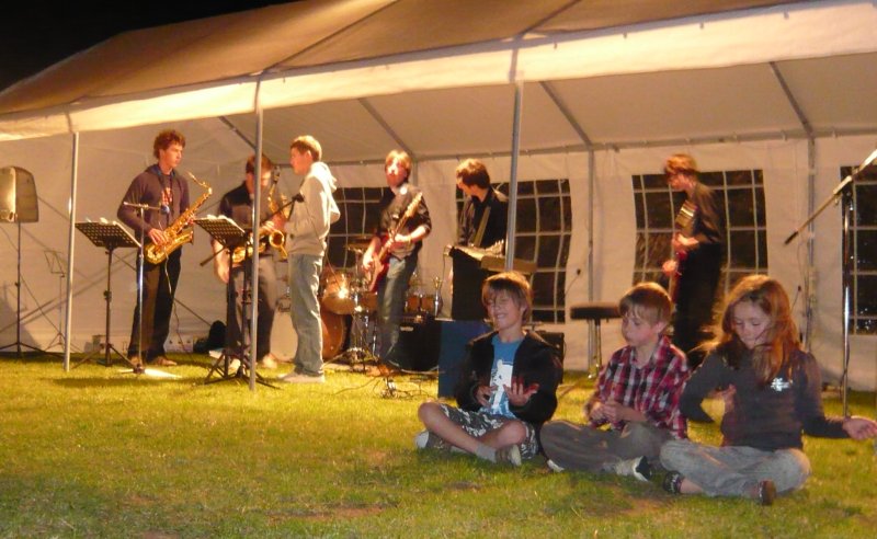 The photo at the top of the page was taken at an open-air gig last year. The three children pictured started off running about and playing around the edges of the event, but gradually became more and more interested in the musical performances, until they spent pretty much all of the band’s second set miming along. The two boys mostly stuck to air guitar and drums, while the girl tended to switch between guitar and saxophone depending what was happening in the music.