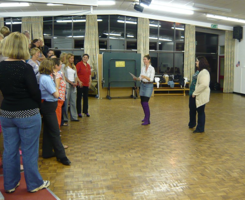 This was particularly noticeable in the stretch swing passage. If people mime the stretch without muscular engagement, you get singing that is in time - a good start, but only a start. We played with how it would feel to stretch one rubber band, then two, then four - and as the imagination conjured up the differences in each case, the physical act of stretching became far more realistic. And that in turn produced not only a greater depth an continuity of resonance through the extra vocal support, but a sassier, brassier vocal colour that matched the body language.