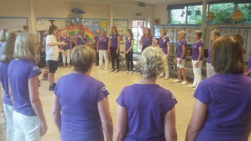 Traditional warm-up shotI spent Saturday working with Winchester A Cappella chorus on the music they will be taking to the Ladies Association of British Barbershop Singers Convention in the autumn. The chorus welcomed a new director last year after a period of some upheaval, and now that the working relationships are getting nicely settled in they were ready for some external input.